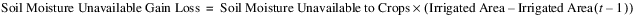 Information: This slot represents and gains (positive) or loss (negative) from the unavailable soil moisture. It is used to track the soil moisture volume gained or lost when the irrigated acreage is changed from the previous timestep. It is a computed output, assuming the current unavailable zone is full.