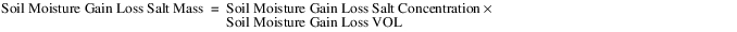 Compute the Soil Moisture Gain Loss Salt Mass as follows. This could be positive or negative depending on the sign of the gains or losses.