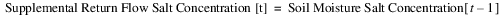 This method is the same as the Soil Moisture Salt Storage method (see Soil Moisture Salt Storage), in terms of slots added and calculations up through Equation 16.29, where Return Flow Salt Concentration is computed. This method adds in the supplemental salt as described below: