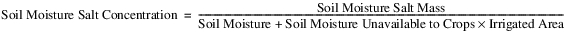 When dealing with salinity concentrations, an additional term is included that is not part of the Soil Moisture. The Soil Moisture Unavailable to Crops is a depth of water that contributes to salinity concentrations but does not contribute to soil moisture volume.