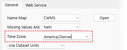 Now, both the DSS and CDA web service datasets support pseudo-regular time series. For this type of data, the Time Zone must be specified in the configuration. The time zone is only required for pseudo-regular time series.