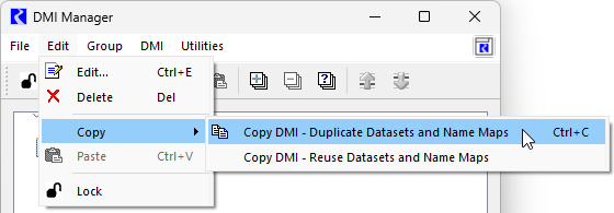 In the DMI Manager, the copy and paste operations on the Edit menu and right-click shortcut menu were revised for simplicity and clarity and are now dependent on the type of DMI.