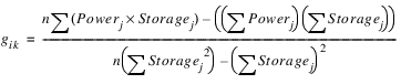 FOR EACH combination of Spill and Tailwater Base Value (or Downstream Storage), k, perform a linear regression to calculate a temporary Storage coefficient gik: