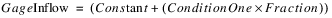 The Stream Gage has a new method category, Conditional Flow Calc, that contains the Fractional Flow user method. The default method in this category is None, so existing models do not require changes. The new user method, Fractional Flow, calculates and sets Gage Inflow based on a comparison between two conditions. If Condition One is less than Condition Two, then the Gage Inflow is set to Condition One multiplied by a user input seasonal Loss Factor plus a user specified Constant. If Condition One is not less than Condition Two, then Gage Inflow is set to a user specified Normal Flow. The following pseudo-code displays the logic of how the Gage Inflow slot is calculated: