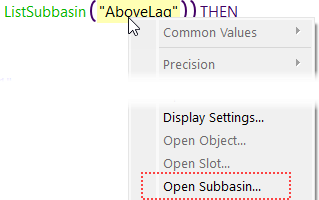 Figure 1.15 RPL Context Menu to Open Subbasin